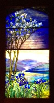 The photo at left is one of the Tiffany windows, beautifully displayed, in the exhibit.