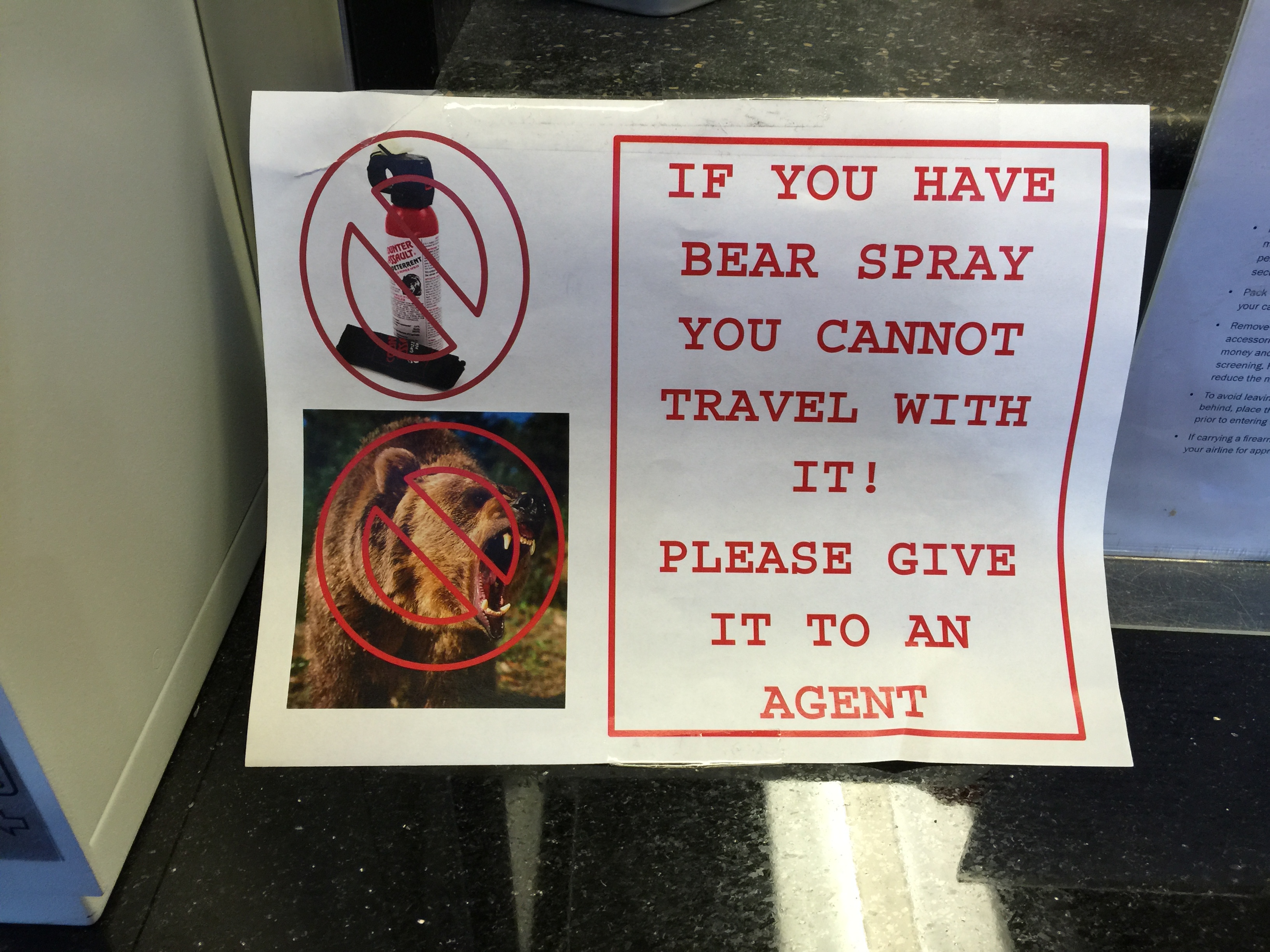 NT-BearsWhen I checked in at the Bozeman airport for an early flight to Chicago, I was confronted by this warning, a sign I never have seen at O’Hare or LaGuardia. Must be lots of bears in Bozeman.