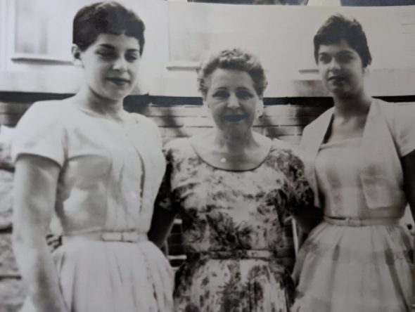Photo caption : Nancy, Muriel, Lynda. Summer 1957. Family photo.