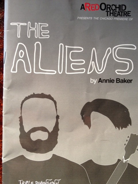 Aliens at A Red Orchid Theatre, extended through 3/16. A Red Orchid is one of those small theaters that makes Chicago’s reputation as the home of excellent storefront theater. It’s a tiny space at the end of a hallway on North Wells Street that makes amazing use of its space. Aliens by Annie Baker is a three-character play in which nothing much happens and moments of silence are dramatic action. Two slackers hang out near the dumpster behind a coffee shop somewhere in Vermont and philosophize, write novels and occasionally make music. A teenager who works there is fascinated by them and their conversation and – perhaps – finds his way to his future. It’s a character study and a sweet play although not for those who need fight scenes and choreography. I recommend it.