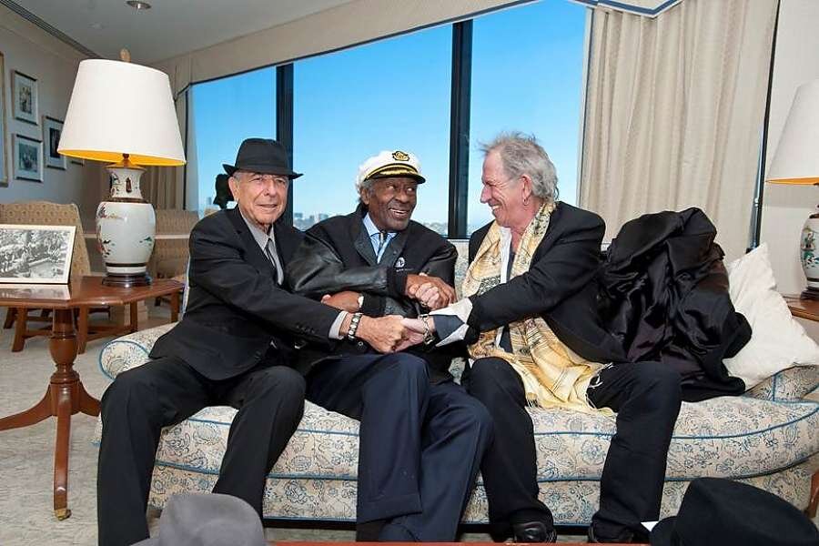 (“Legends of Music,” the photo of Leonard Cohen, Chuck Berry and Keith Richards, was taken February 26, 2012, at the JFK Library and tweeted last week by Keith @officialKeef.)