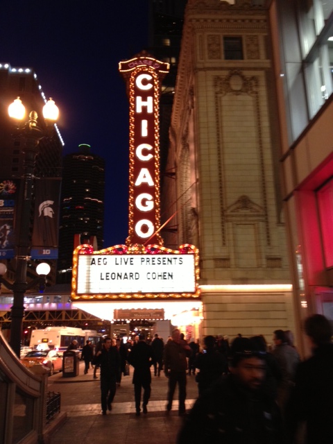 Leonard Cohen gives me another chance. I missed Leonard last time around in November but he’ll perform one of his great concerts Wednesday, March 13, at the Chicago Theatre. I recommend his latest album, Old Ideas, again. http://www.leonardcohen.com/us/home.