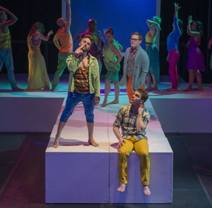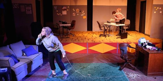 “One problem with the whole production is the overworked circus atmosphere. Yes, death-defying acts suggest a carnival with risky high-wire acts. Old circus posters decorate the lobby of the church-basement theater. Before the show opens, an old circus film, Here Comes the Circus, is projected across the stage floor. The crew is dressed in circus clown and aerialist costumes while making stage changes. But it’s a bit over the top, especially considering the lack of death-defying acts on stage.”