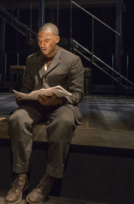 Nambi E. Kelley has written a spine-tingling adaptation, leaving the linear plot line of the novel behind and playing out Bigger’s story in a crisp 90-minute production. The cleverly designed setting of wooden stairs, poles and walkways by Regina Garcia really makes he play work. Seret Scott’s direction holds the story together and made me forget to miss Max, Bigger’s left-wing lawyer, whose character Kelley stripped out of her script.